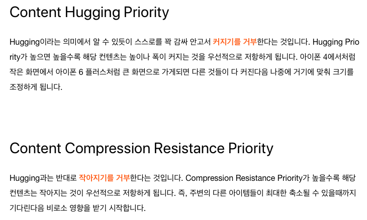 2) 제약사항의 우선순위, 컨첸츠 우선순위 (content hugging, compression resistence)