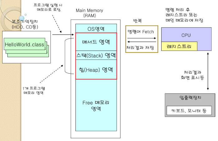 => 메소드 영역, 힙 영역, JVM 스택 영역